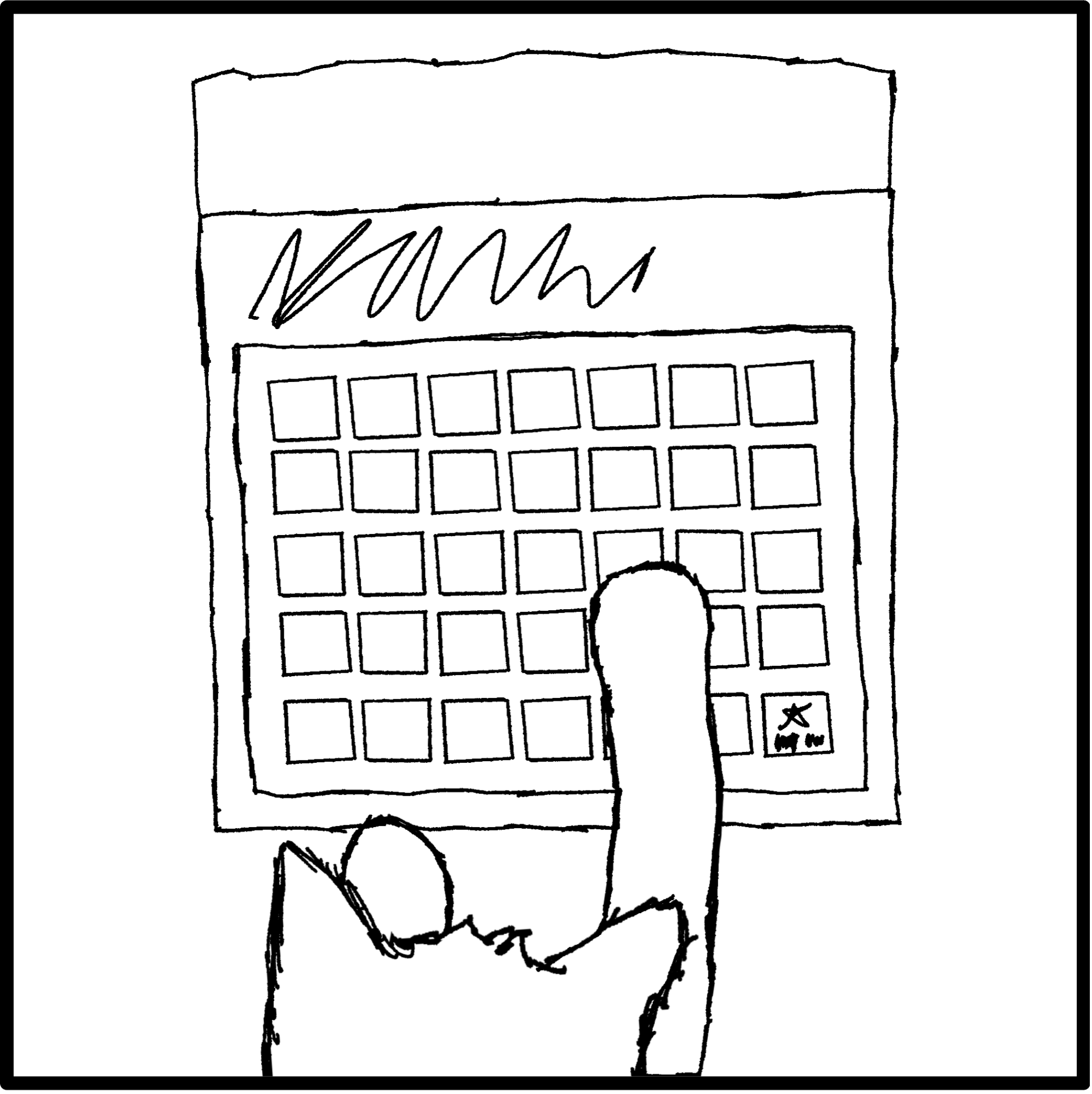 Dot furiously started pawing at the calendar pages marking the days and weeks left ahead of them. She got out her claws and really started to tear at it, letting her own determination inspire the whole apartment to take the deadline as seriously as she did.